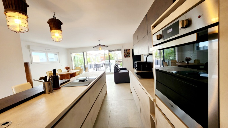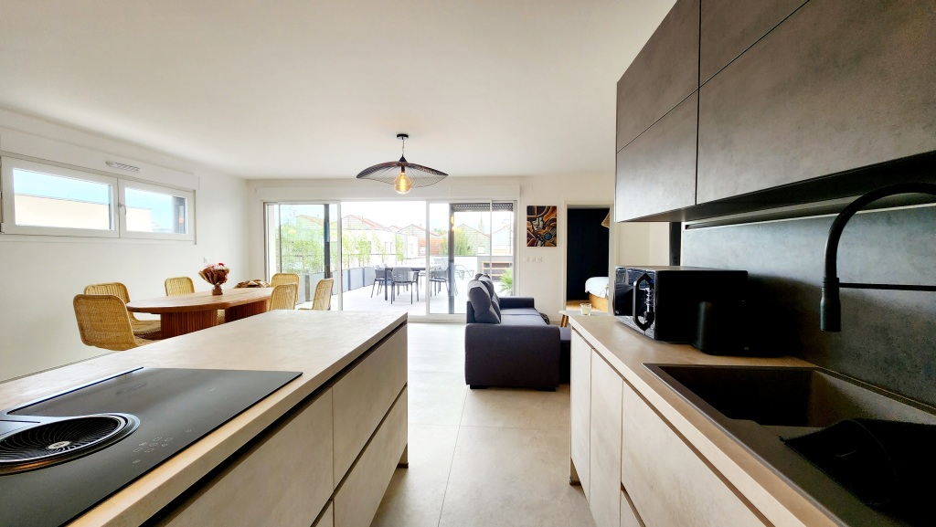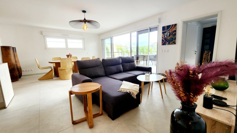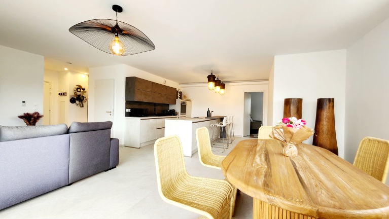 Cet appartement spacieux de 3 chambres a été conçu pour le confort et le raffinement. Les trois chambres sont aménagées avec soin pour offrir une literie de qualité et des espaces de rangement, dont un dressing dans la chambre principale. L’intérieur allie élégance et modernité, avec un salon lumineux et une cuisine entièrement équipée.