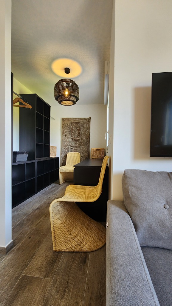 La pièce maîtresse de ce penthouse est sa grande terrasse privée, un espace extérieur idyllique où vous pourrez vous détendre et prendre vos repas. Pour les journées ensoleillées, une petite piscine vous attend pour un moment de fraîcheur et de relaxation, le tout avec une vue imprenable sur les environs.